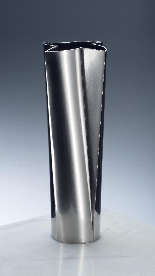 Die Jury war beeindruckt von der Perfektion, mit der David Besenfelder den Edelstahl bearbeitet. Besonders seine aus Einzelformen montierten Vasen bestechen durch ihre makellose Oberfläche und die konsequente Beschränkung auf die Vervielfältigung einer Grundstruktur aus gerader und gebogener Fläche.